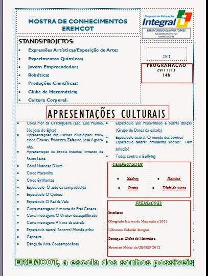 trabalhos como, danças, apresentações teatrais, paródias, poemas e danças